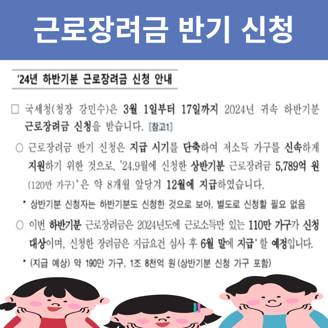 ✔ 2024년 근로장려금 반기 신청 기간 대상자 중 54만 명 자동 신청 완료